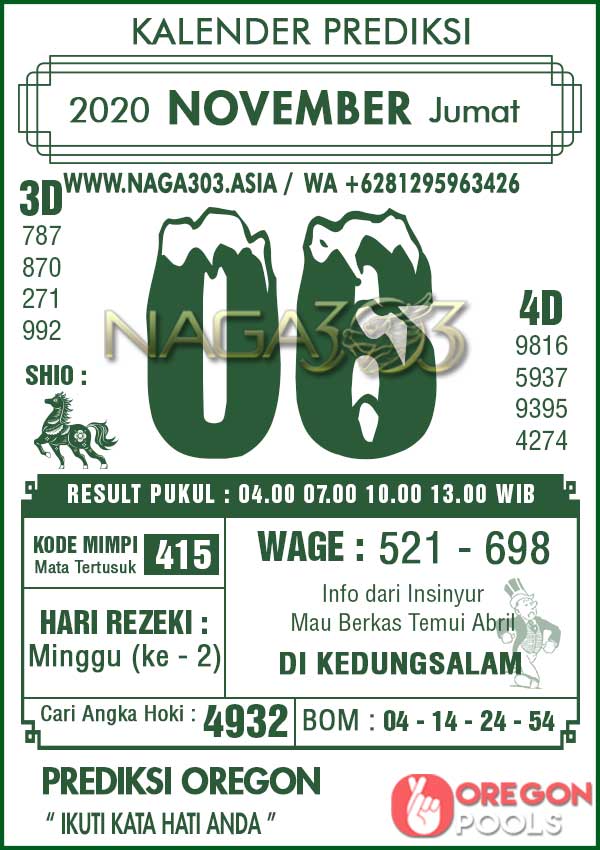 Prediksi Oregon Pools Jumat 06 November 2020 | Web Toto Naga303