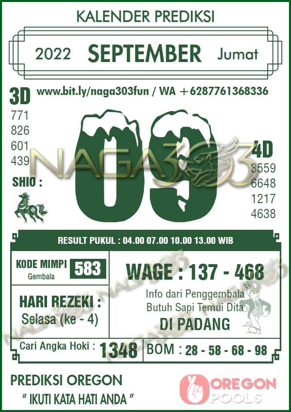 Prediksi Oregon Pools Jumat 09 September 2022 | Web Toto Naga303