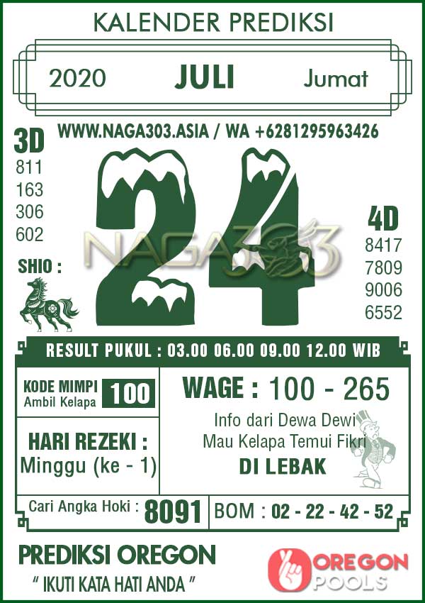 Prediksi Oregon Pools Jumat 24 Juli 2020 | Web Toto Naga303