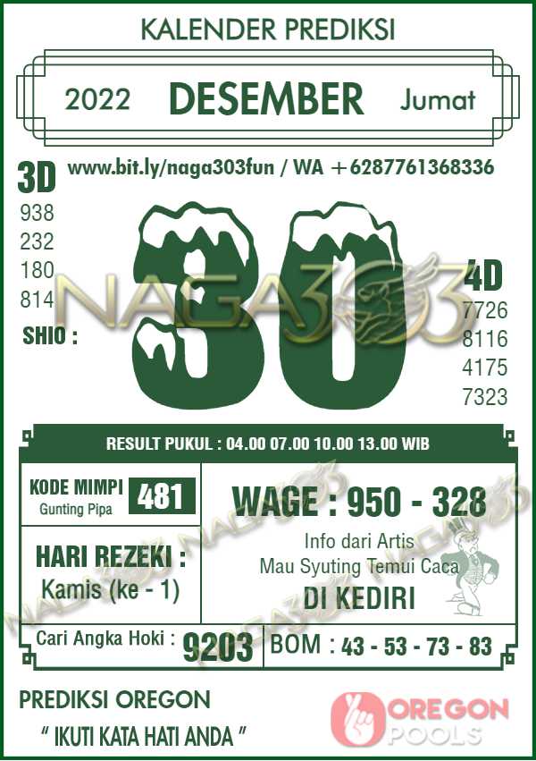 Prediksi Oregon Pools Jumat 30 Desember 2022 | Web Toto Naga303