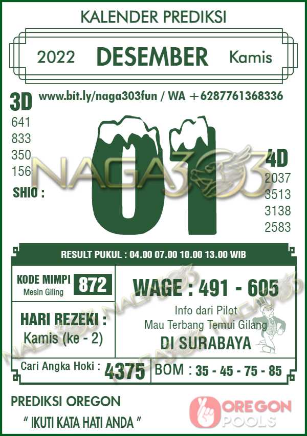 Prediksi Oregon Pools Kamis 01 Desember 2022 | Web Toto Naga303