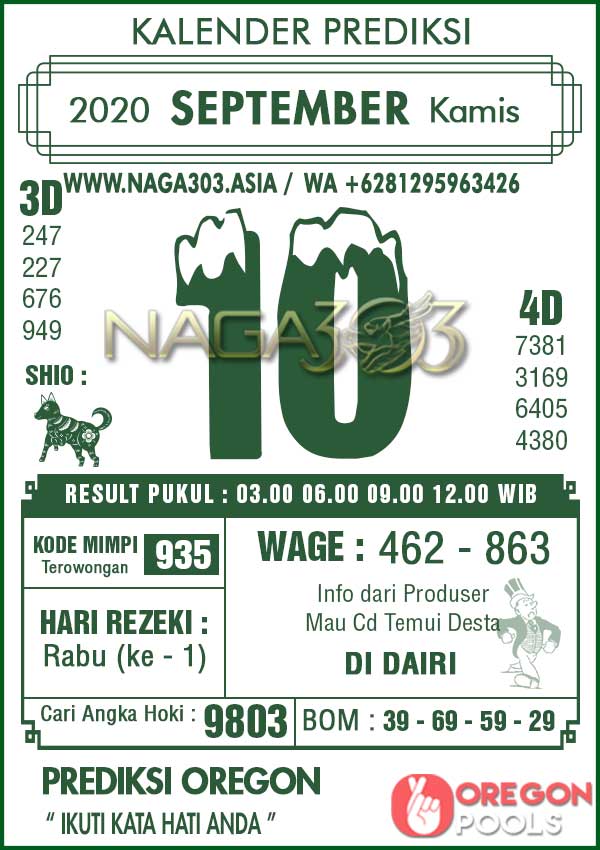 Prediksi Oregon Pools Kamis 10 September 2020 | Web Toto Naga303