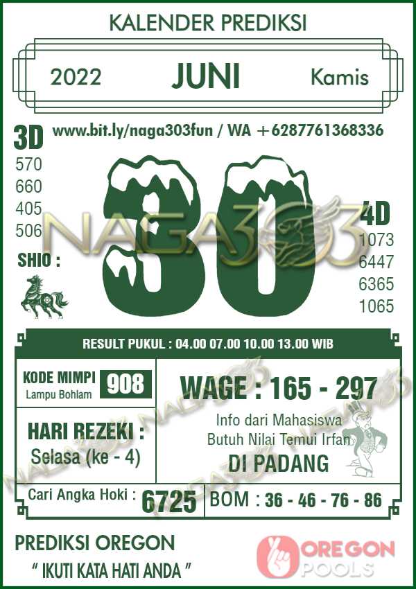 Prediksi Oregon Pools Kamis 30 Juni 2022 | Web Toto Naga303