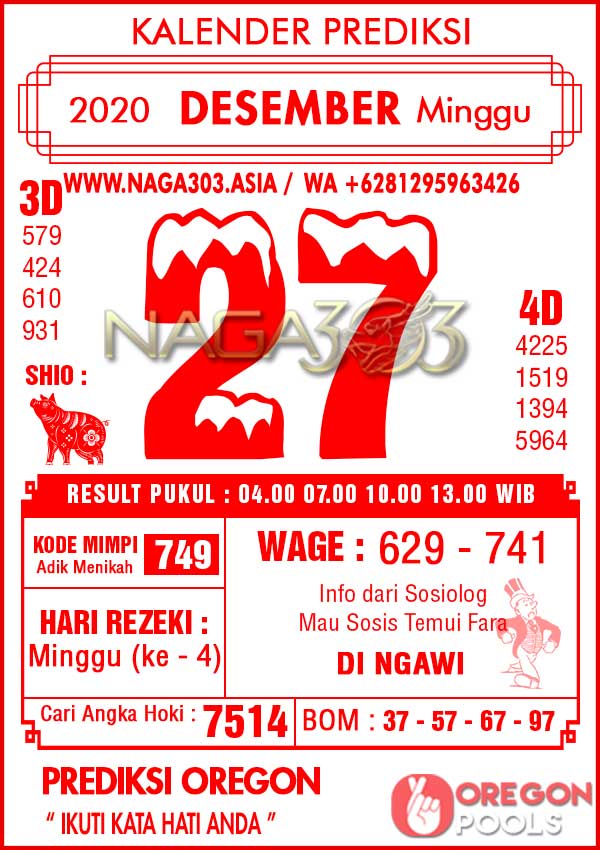 Prediksi Oregon Pools Minggu 27 Desember 2020 | Web Toto Naga303