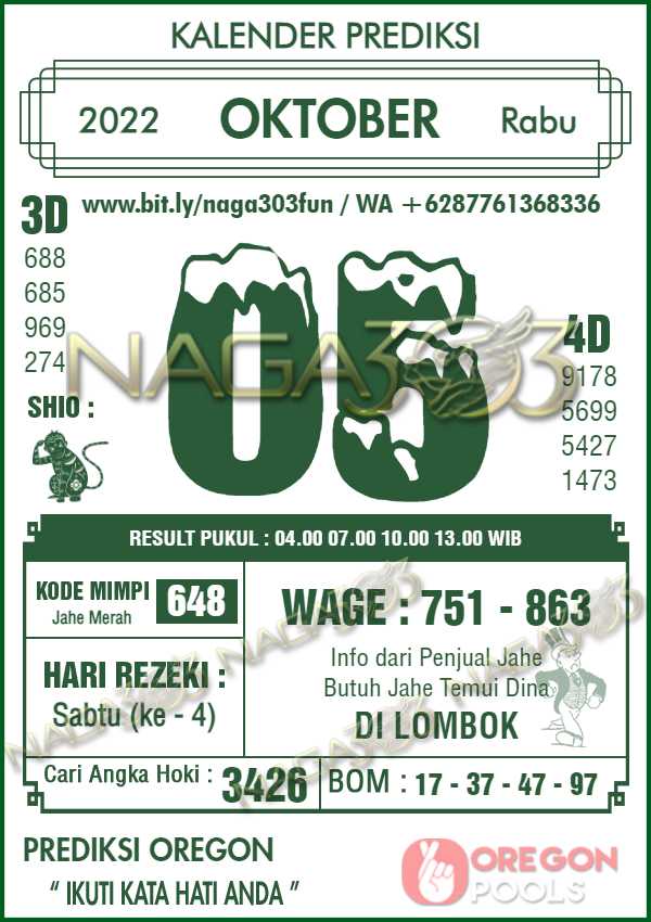 Prediksi Oregon Pools Rabu 05 Oktober 2022 | Web Toto Naga303
