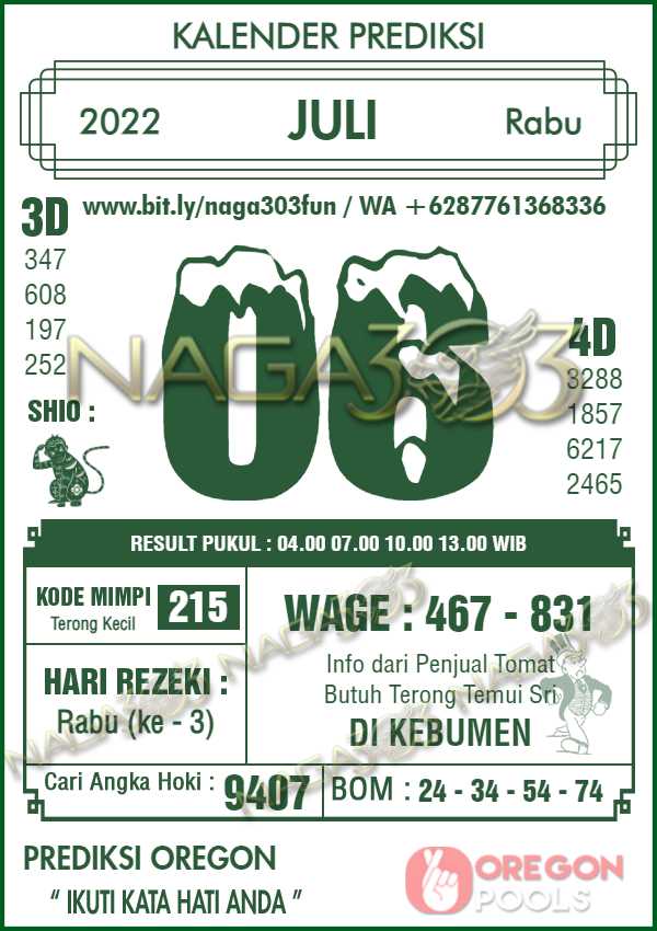 Prediksi Oregon Pools Rabu 06 Juli 2022 | Web Toto Naga303