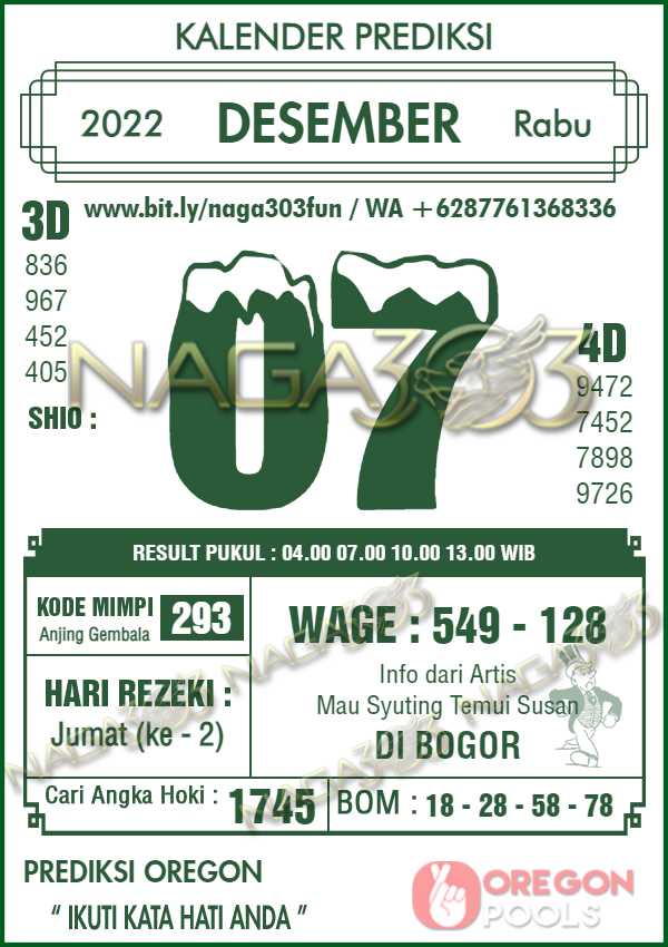 Prediksi Oregon Pools Rabu 07 Desember 2022 | Web Toto Naga303