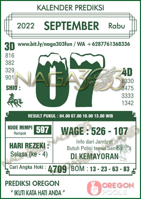 Prediksi Oregon Pools Rabu 07 September 2022 | Web Toto Naga303