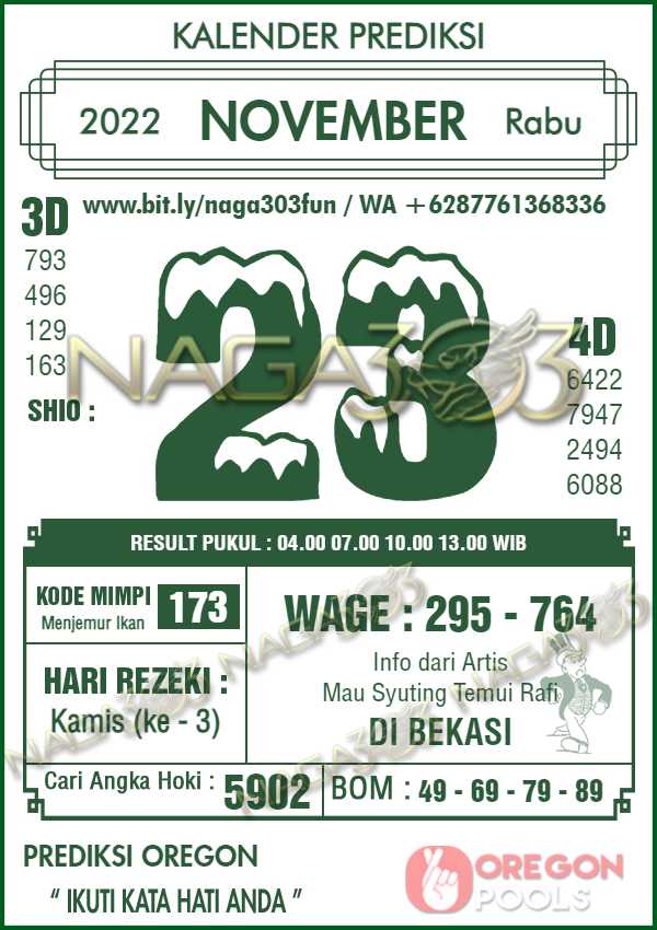 Prediksi Oregon Pools Rabu 23 November 2022 | Web Toto Naga303