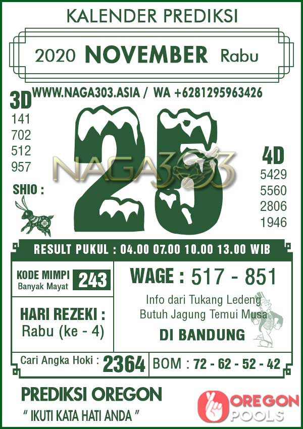 Prediksi Oregon Pools Rabu 25 November 2020 | Web Toto Naga303