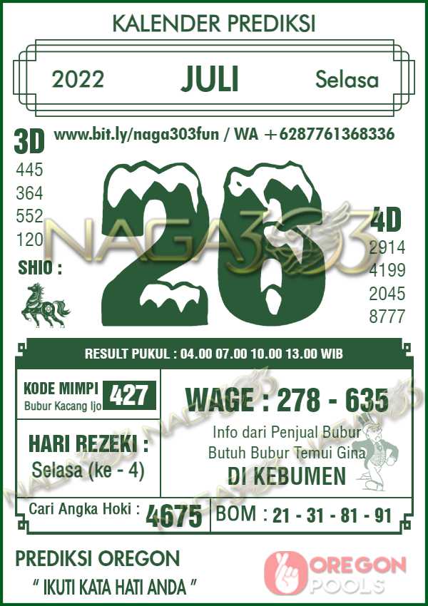 Prediksi Oregon Pools Rabu 27 Juli 2022 | Web Toto Naga303