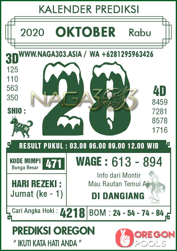 Prediksi Oregon Pools Rabu 28 Oktober 2020 | Web Toto Naga303