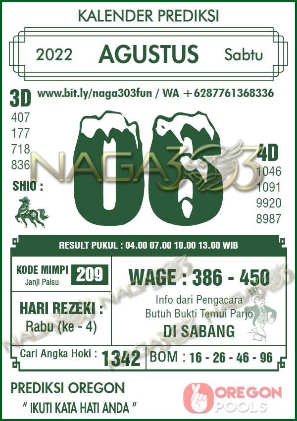 Prediksi Oregon Pools Sabtu 06 Agustus 2022 | Web Toto Naga303