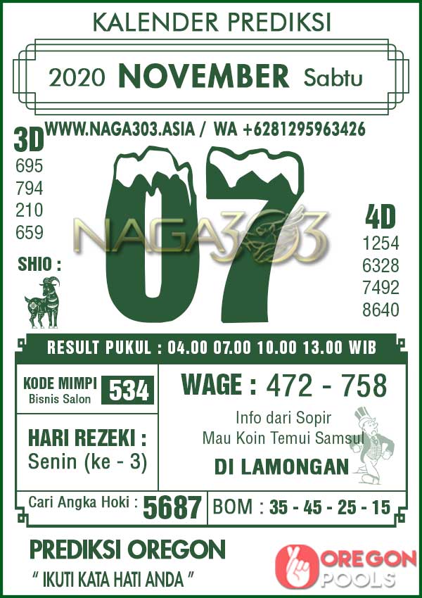 Prediksi Oregon Pools Sabtu 07 November 2020 | Web Toto Naga303