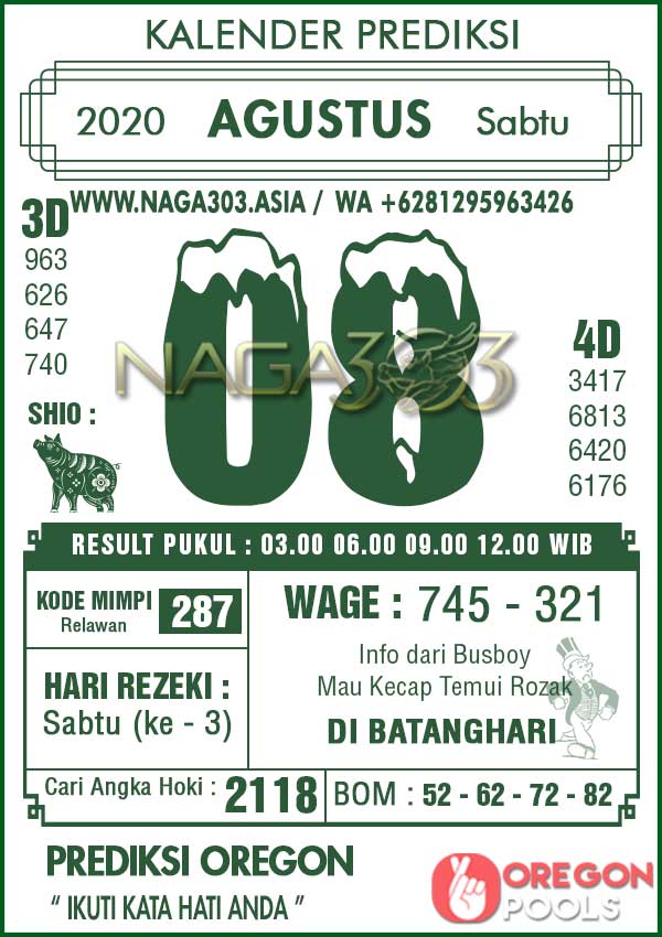 Prediksi Oregon Pools Sabtu 08 Agustus 2020 | Web Toto Naga303