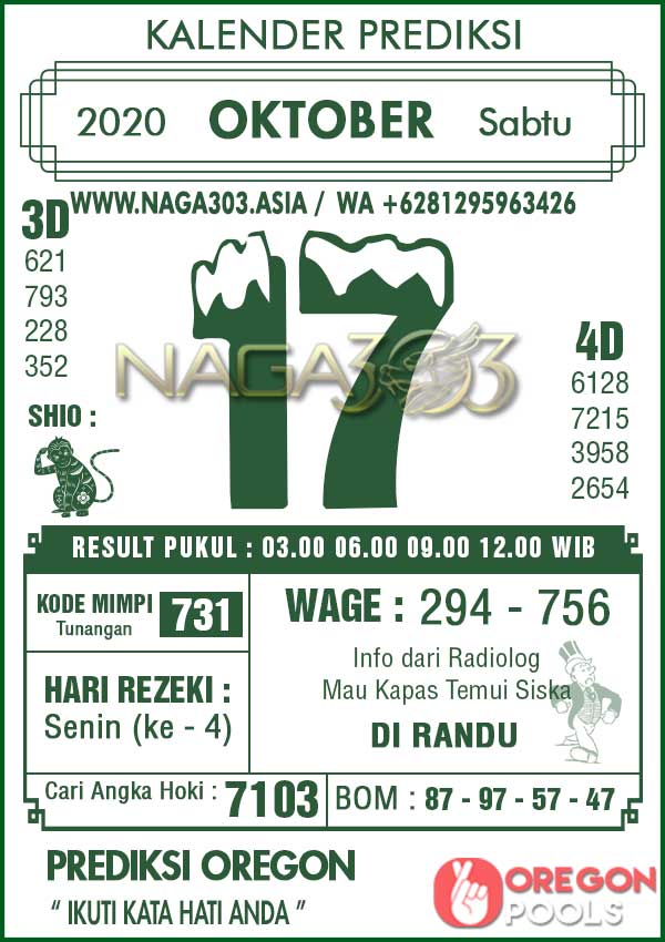 Prediksi Oregon Pools Sabtu 17 Oktober 2020 | Web Toto Naga303
