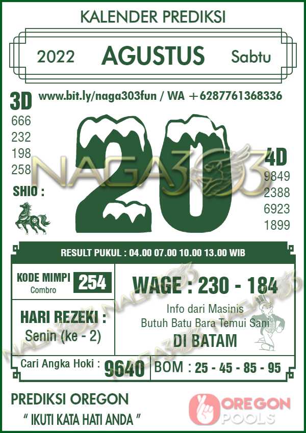Prediksi Oregon Pools Sabtu 20 Agustus 2022 | Web Toto Naga303