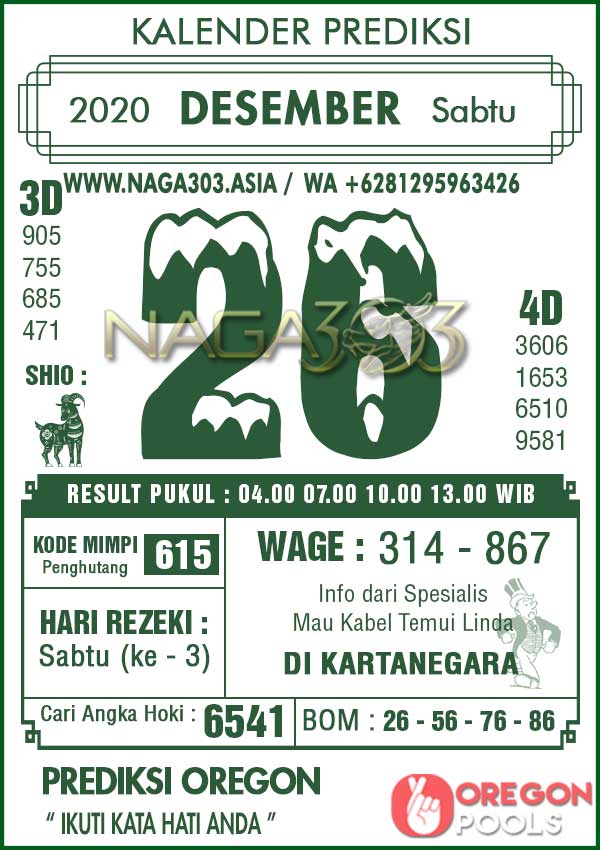 Prediksi Oregon Pools Sabtu 26 Desember 2020 | Web Toto Naga303