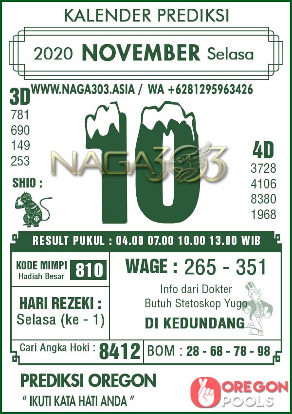 Prediksi Oregon Pools Selasa 10 November 2020 | Web Toto Naga303