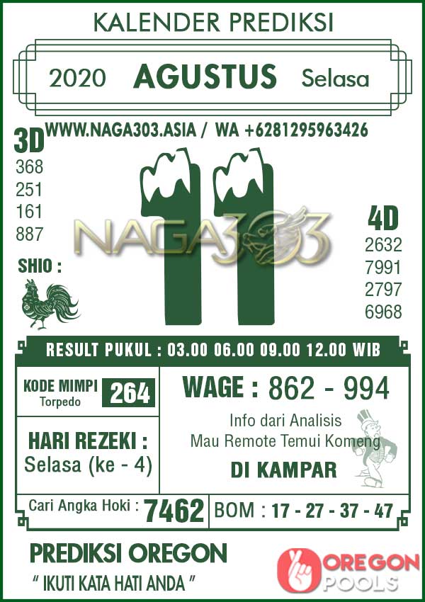 Prediksi Oregon Pools Selasa 11 Agustus 2020 | Web Toto Naga303
