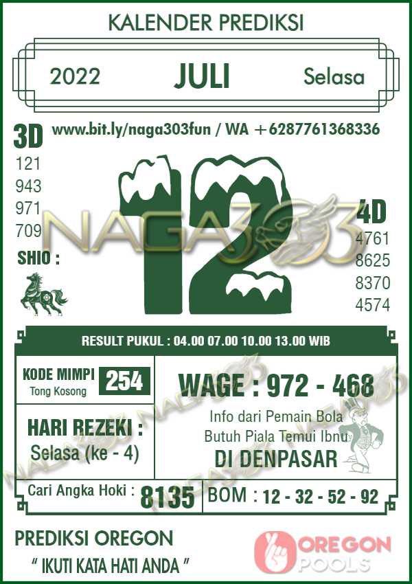 Prediksi Oregon Pools Selasa 12 Juli 2022 | Web Toto Naga303