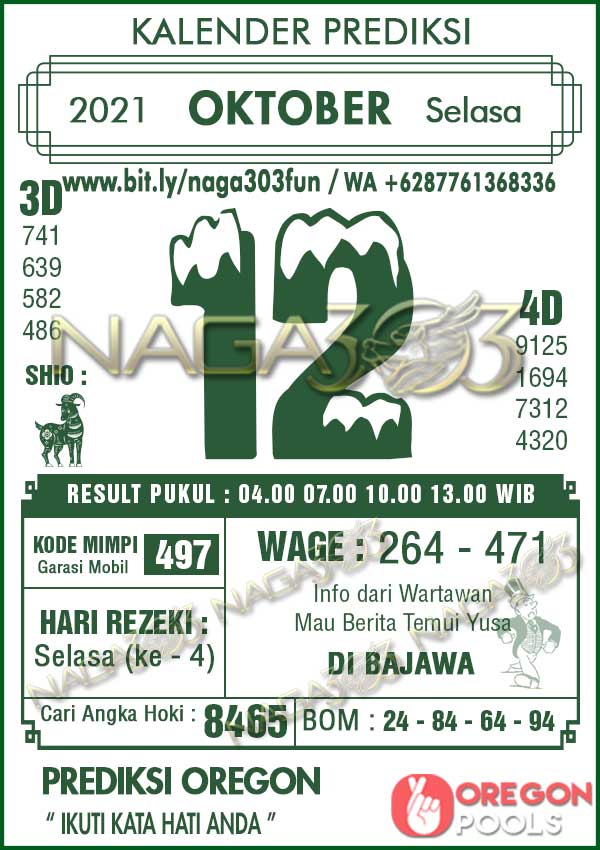 Prediksi Oregon Pools Selasa 12 Oktober 2021 | Web Toto Naga303