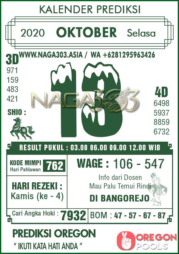 Prediksi Oregon Pools Selasa 13 Oktober 2020 | Web Toto Naga303