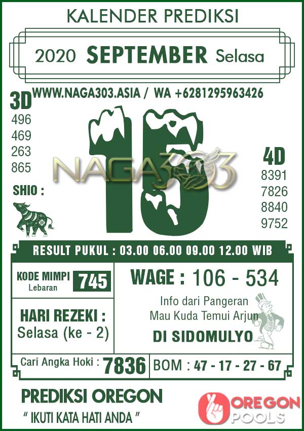 Prediksi Oregon Pools Selasa 15 September 2020 | Web Toto Naga303
