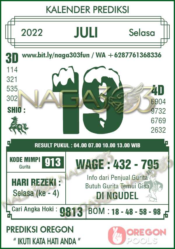 Prediksi Oregon Pools Selasa 19 Juli 2022 | Web Toto Naga303