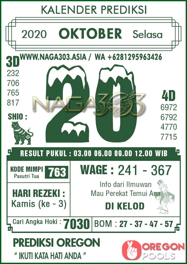 Prediksi Oregon Pools Selasa 20 Oktober 2020 | Web Toto Naga303