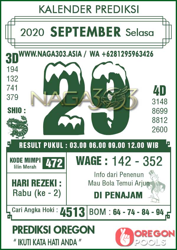 Prediksi Oregon Pools Selasa 29 September 2020 | Web Toto Naga303