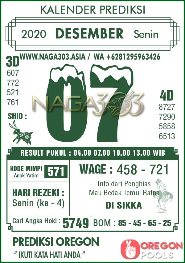 Prediksi Oregon Pools Senin 07 Desember 2020 | Web Toto Naga303
