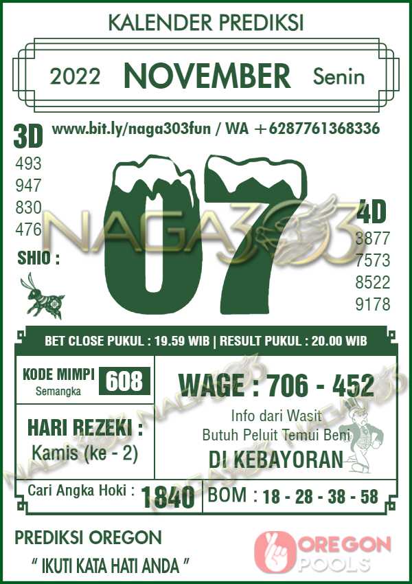 Prediksi Oregon Pools Senin 07 November 2022 | Web Toto Naga303