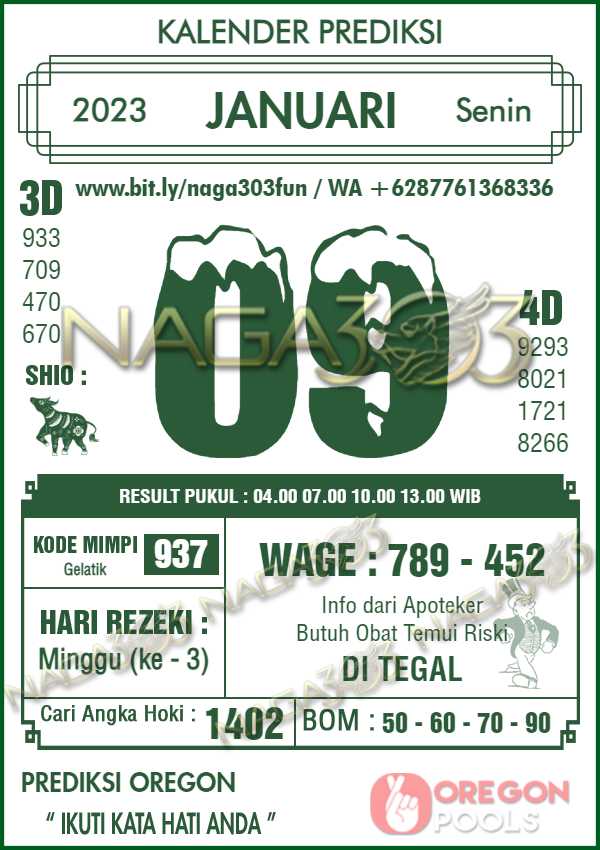 Prediksi Oregon Pools Senin 09 Januari 2023 | Web Toto Naga303