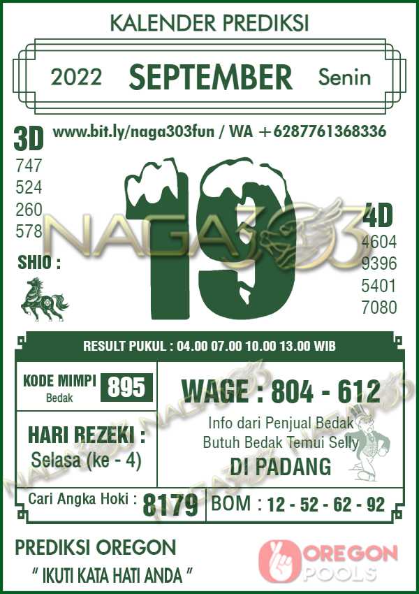 Prediksi Oregon Pools Senin 19 September 2022 | Web Toto Naga303