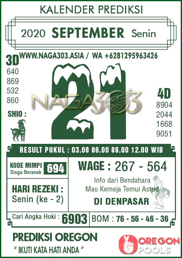 Prediksi Oregon Pools Senin 21 September 2020 | Web Toto Naga303