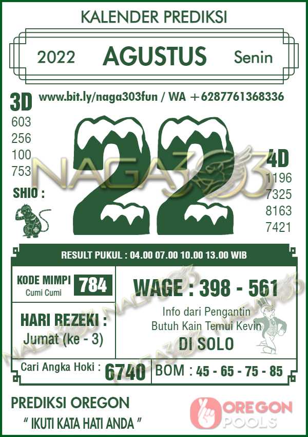 Prediksi Oregon Pools Senin 22 Agustus 2022 | Web Toto Naga303