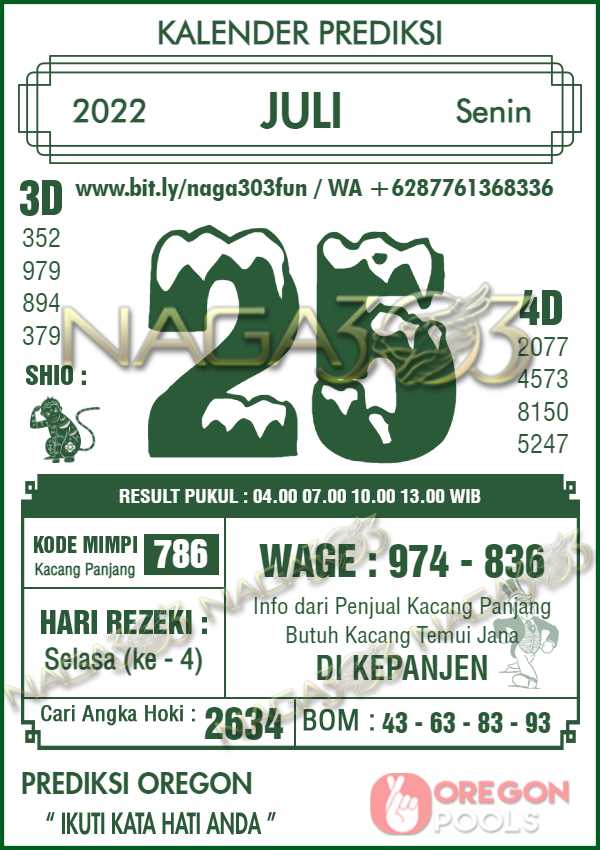 Prediksi Oregon Pools Senin 25 Juli 2022 | Web Toto Naga303