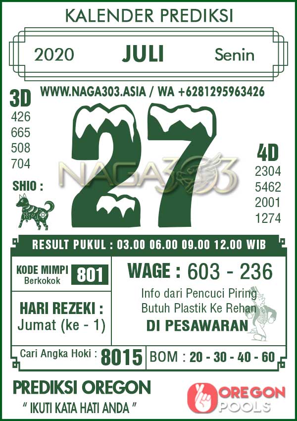 Prediksi Oregon Pools Senin 27 Juli 2020