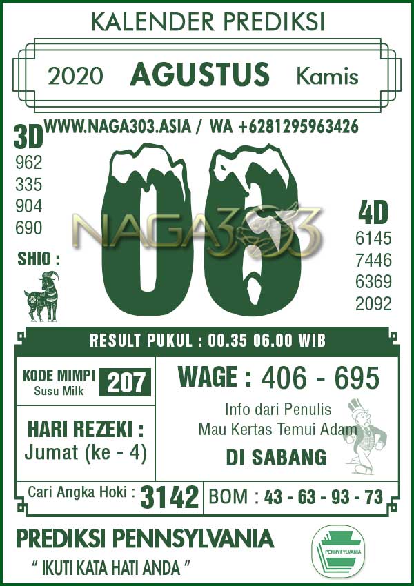 Prediksi Pennsylvania Pools Kamis 06 Agustus 2020 | Web Toto Naga303