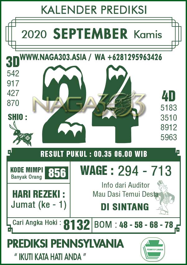 Prediksi Pennsylvania Pools Kamis 24 September 2020 | Web Toto Naga303
