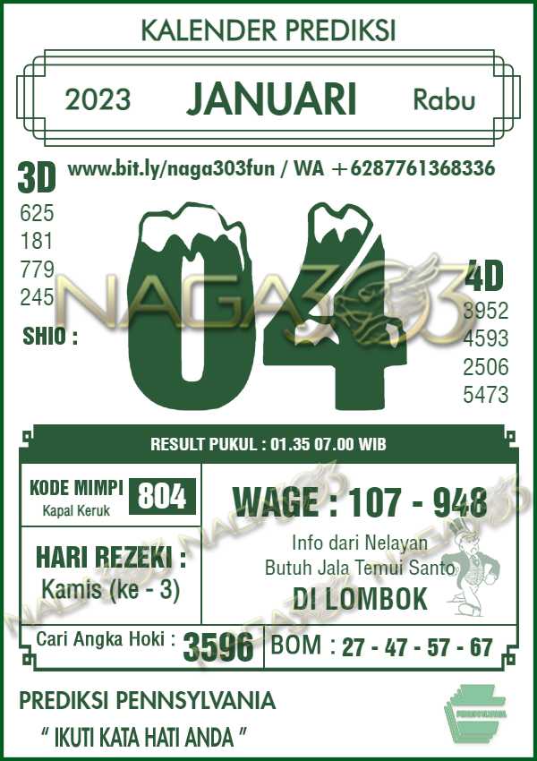 Prediksi Pennsylvania Pools Rabu 04 Januari 2023 | Web Toto Naga303