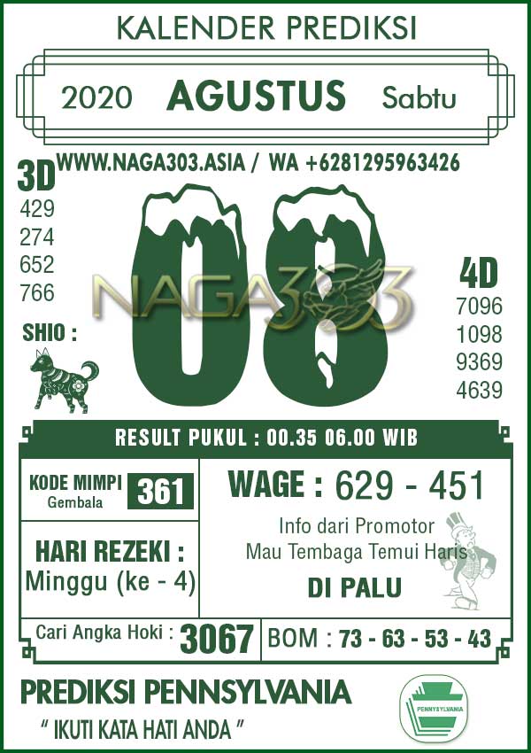 Prediksi Pennsylvania Pools Sabtu 08 Agustus 2020 | Web Toto Naga303