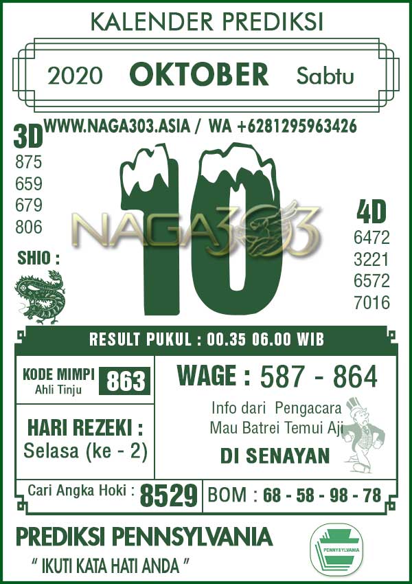 Prediksi Pennsylvania Pools Sabtu 10 Oktober 2020 | Web Toto Naga303