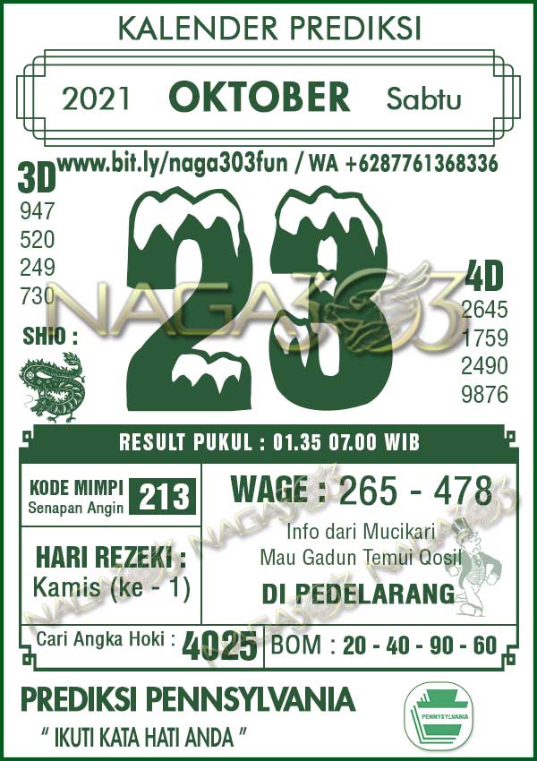Prediksi Pennsylvania Pools Sabtu 23 Oktober 2021 | Web Toto Naga303