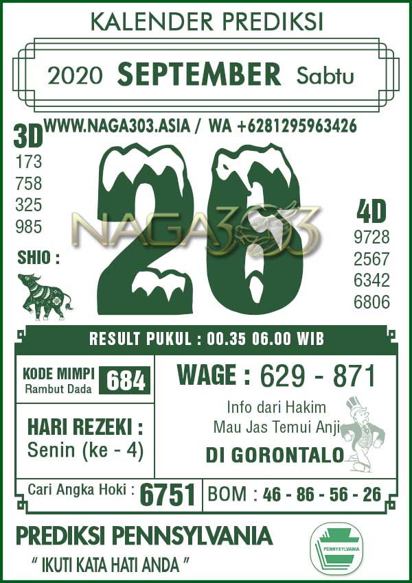 Prediksi Pennsylvania Pools Sabtu 26 September 2020 | Web Toto Naga303