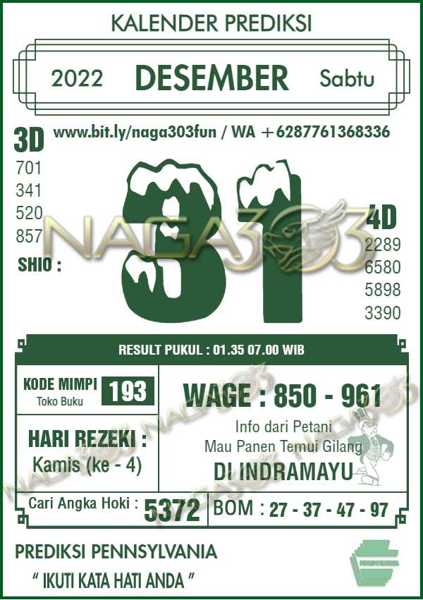Prediksi Pennsylvania Pools Sabtu 31 Desember 2022
