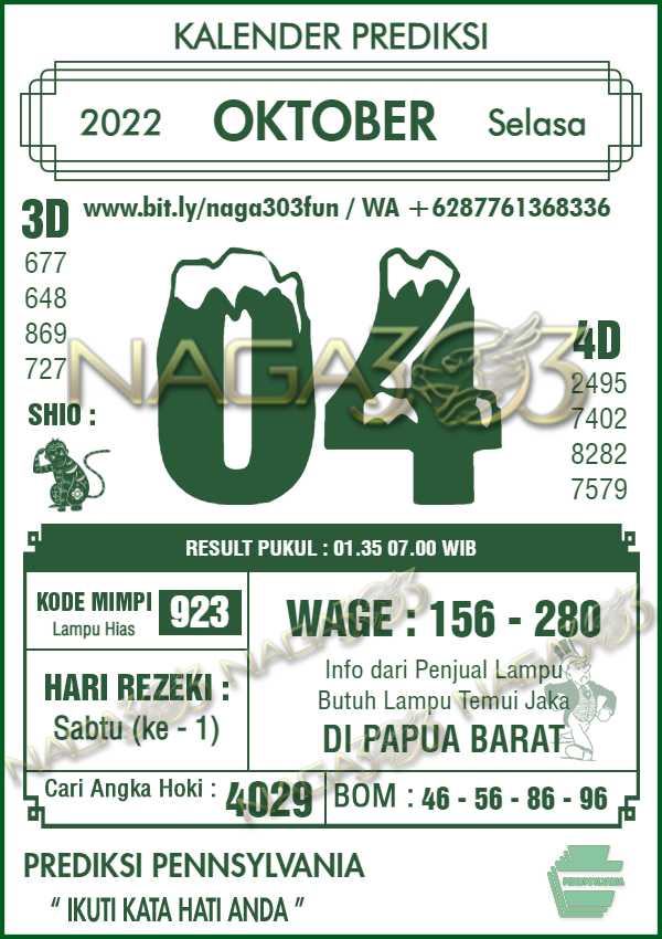 Prediksi Pennsylvania Pools Selasa 04 Oktober 2022