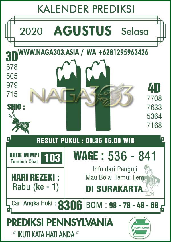 Prediksi Pennsylvania Pools Selasa 11 Agustus 2020 | Web Toto Naga303