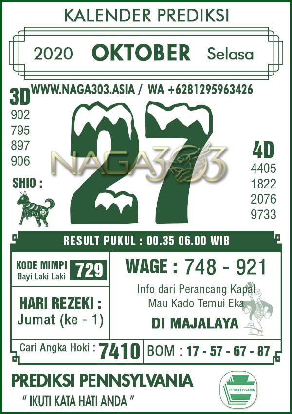 Prediksi Pennsylvania Pools Selasa 27 Oktober 2020 | Web Toto Naga303